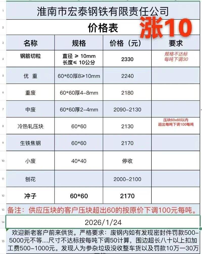 **日淮南宏泰廢鋼漲**: