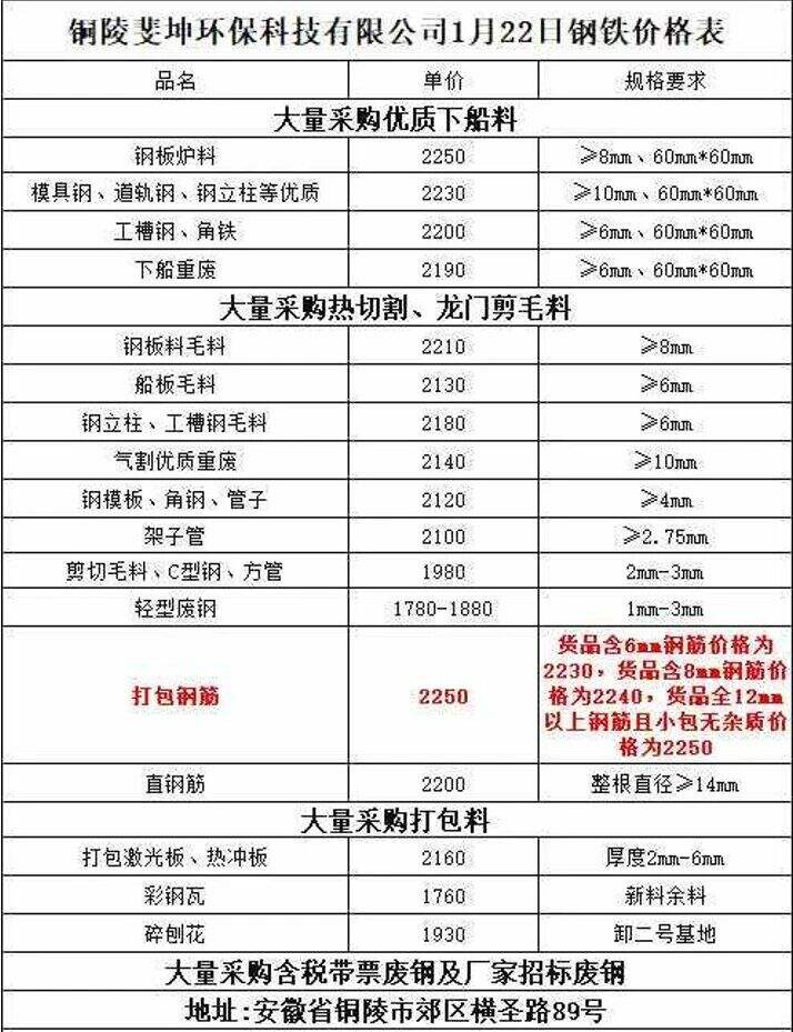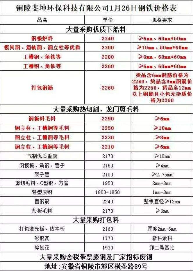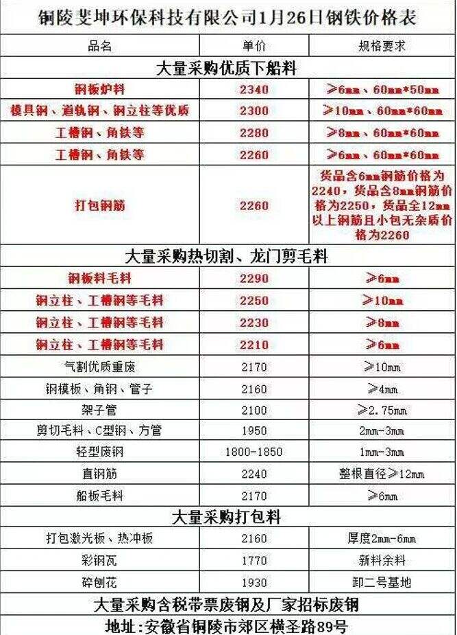 ****年*月**日銅陵斐坤環(huán)保科技有限公司鋼鐵價格表