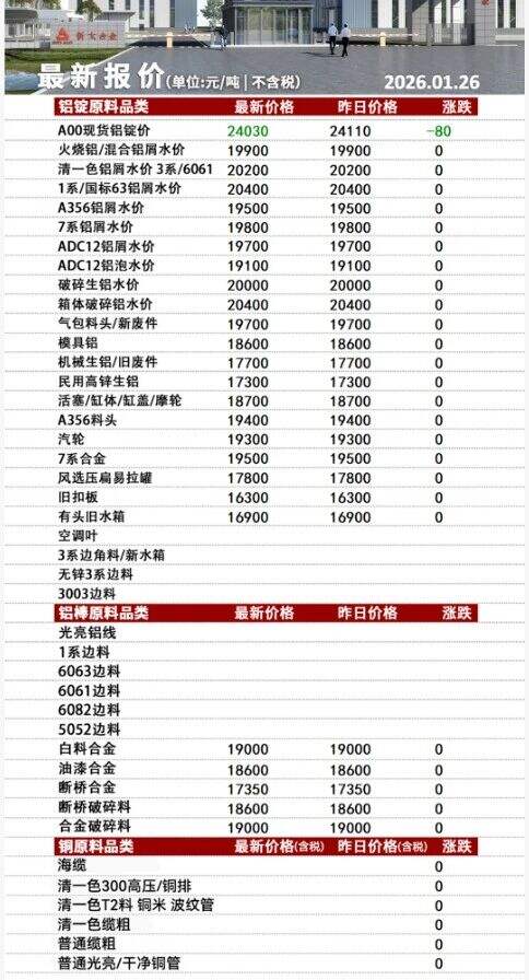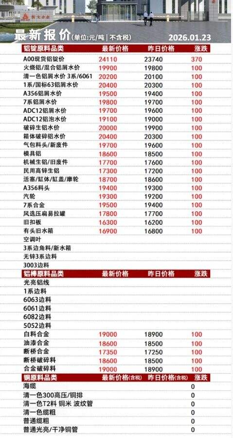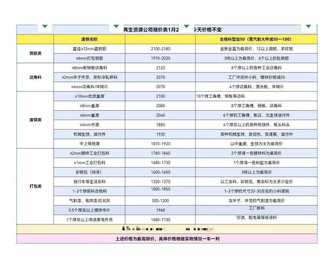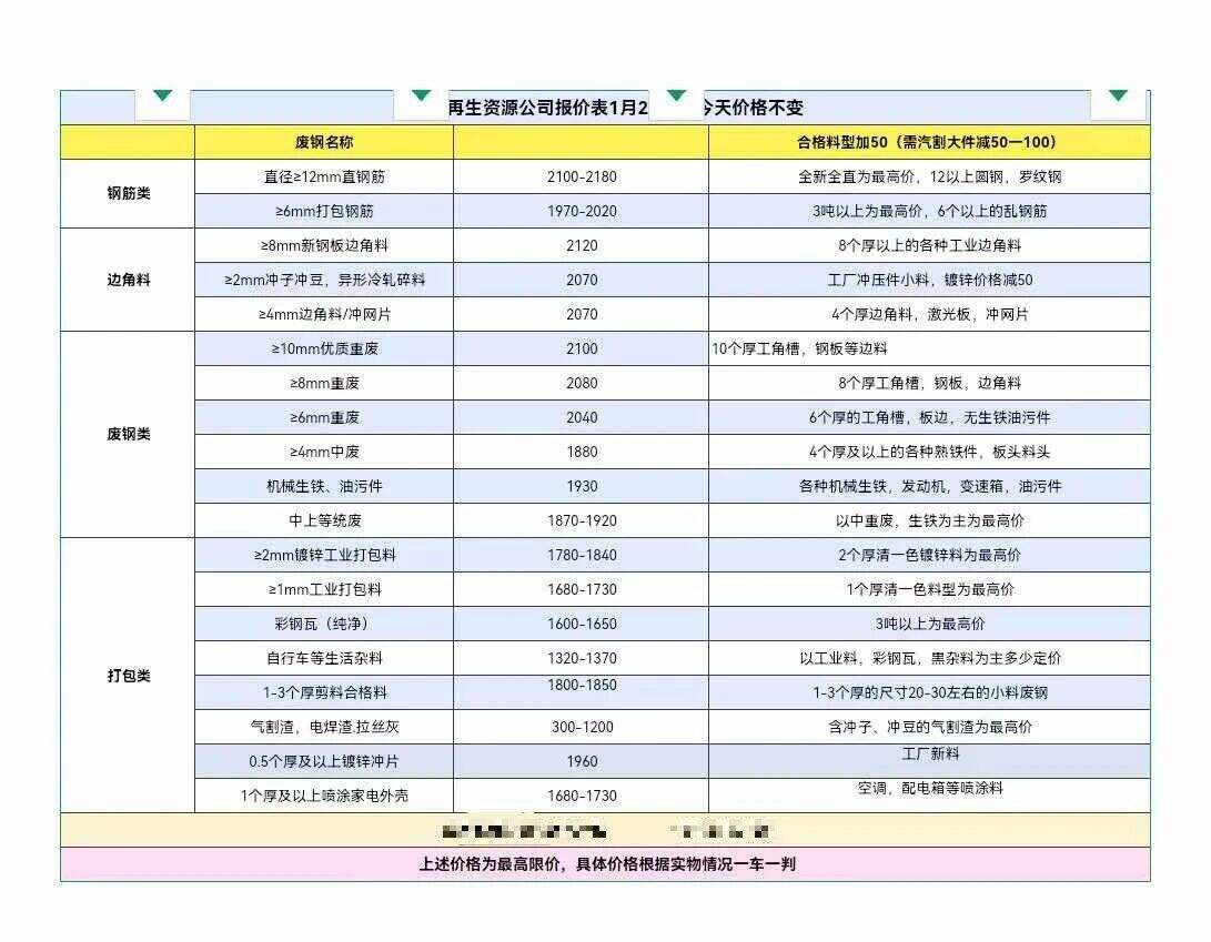 ****年*月**日彭瀾再生資源價格表