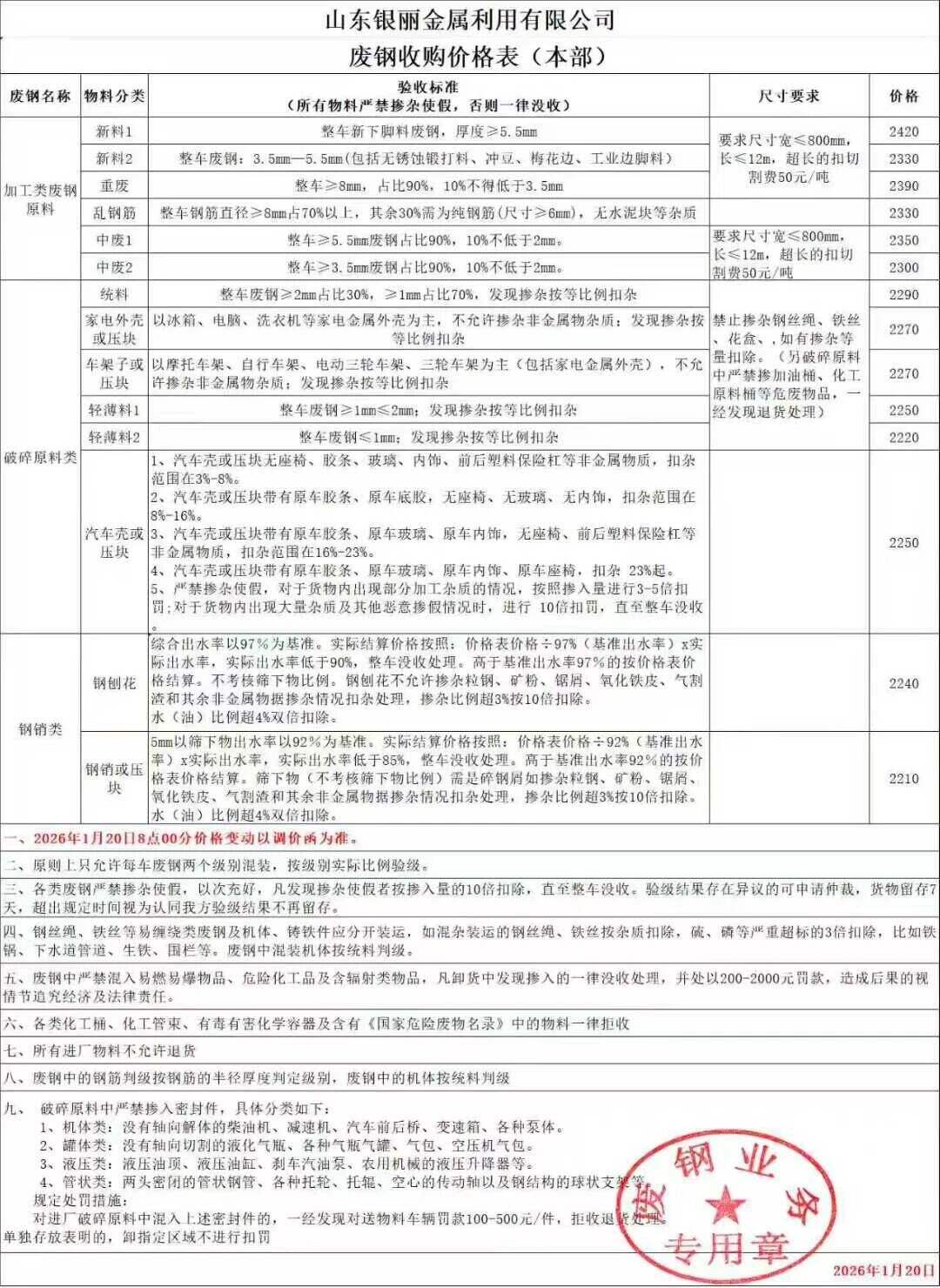 齊河永鋒價(jià)格調(diào)整,開收破碎料和鋼屑