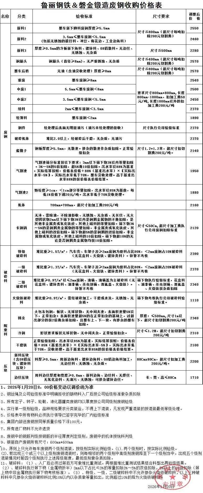青島特鋼通知:各廢鋼供戶,我司于****年*月**日*時(shí)**分起對工廠廢料I-Ⅴ類、鋼板料(廢鋼)、船板料I-Ⅱ類、機(jī)生鐵Ⅰ-Ⅱ類、破碎料*-*級、鋼筋切頭*類、*類、馬蹄鐵、沖壓新料、破碎料(干磨火燒鐵)、小型廢鋼、干磨鋼塊、普刨花、碎料壓塊上調(diào)**元/噸。