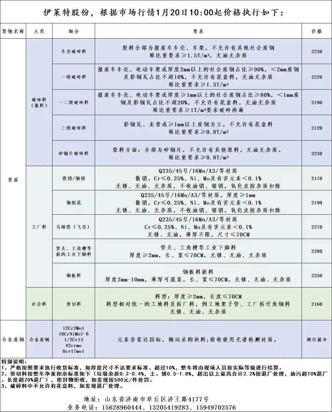 自****年*月**日起,玫德集團(tuán)所有廢鋼料型上調(diào)**元,明細(xì)如下:
