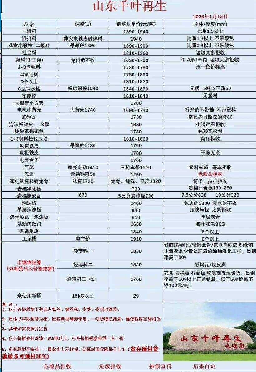 ****年**月**日山東千葉再生(臨沂郯城)報價:
