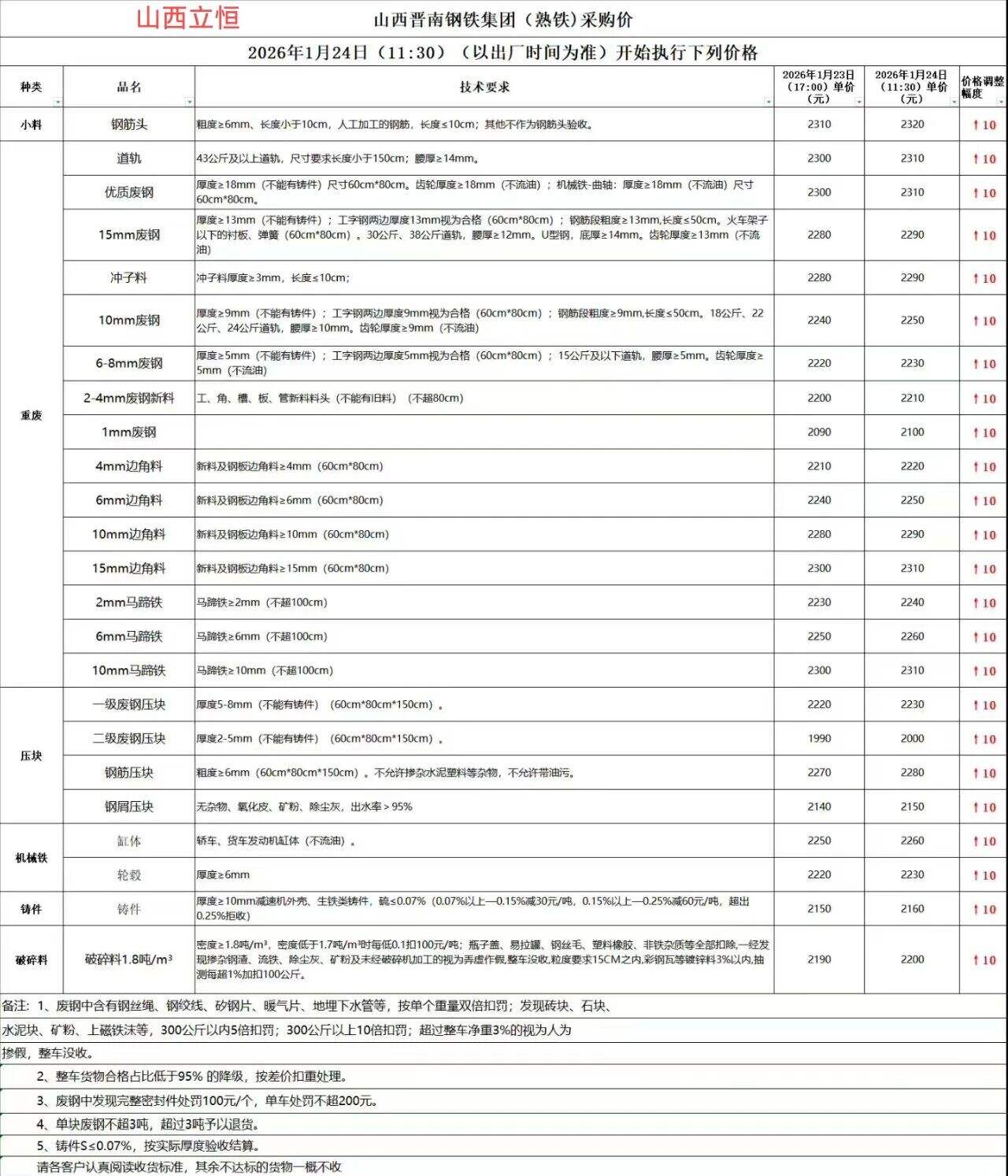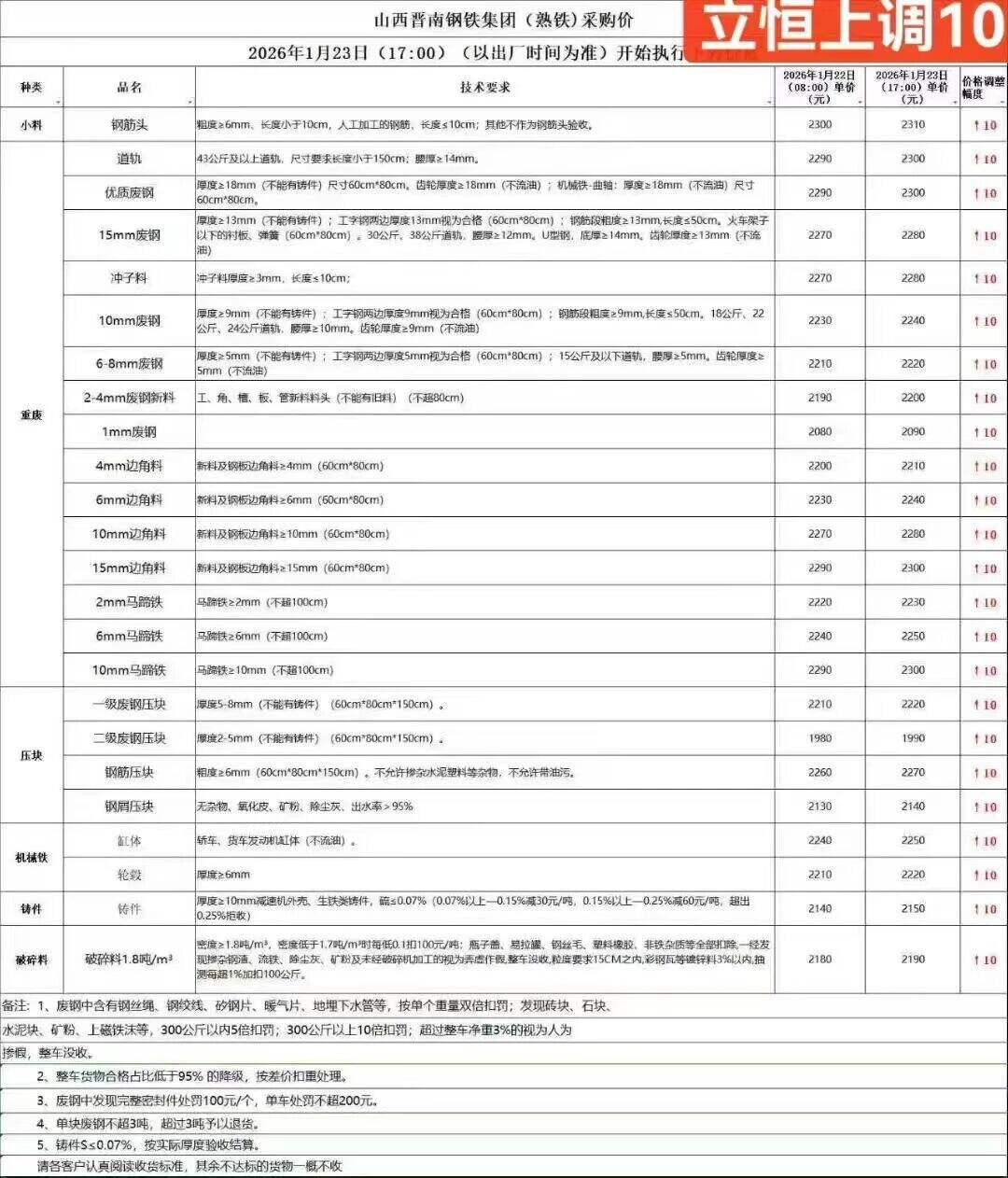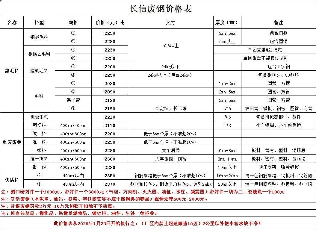 山西長(zhǎng)信鋼鐵通知:從****年*月**號(hào)*時(shí)廢鋼統(tǒng)一上調(diào)**元/噸,廢鋼車輛下午五點(diǎn)半之前進(jìn)廠,兩公里外必須把水箱水放干凈。