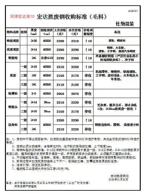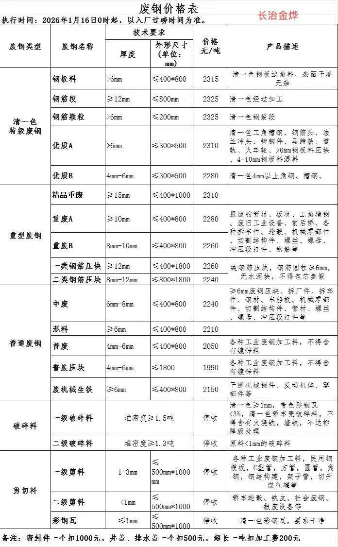 *月**日山西長(zhǎng)治金燁鋼鐵廢鋼采購(gòu)價(jià)格上調(diào)**: