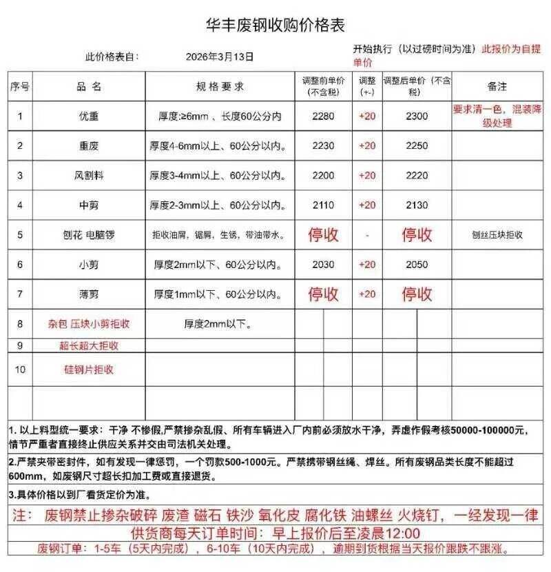 *月**日起,韶鋼廢鋼上調(diào)**-**元/噸。