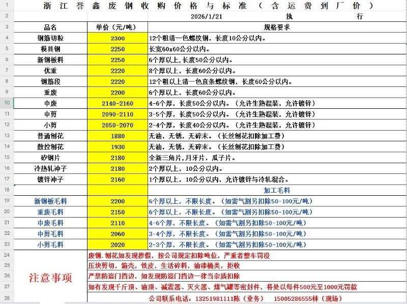 *日麗水譽(yù)鑫廢鋼執(zhí)行價(jià)