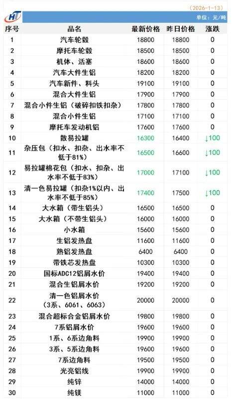 ****年*月**日湖南宏拓鋁業(yè)有限公司最新報價