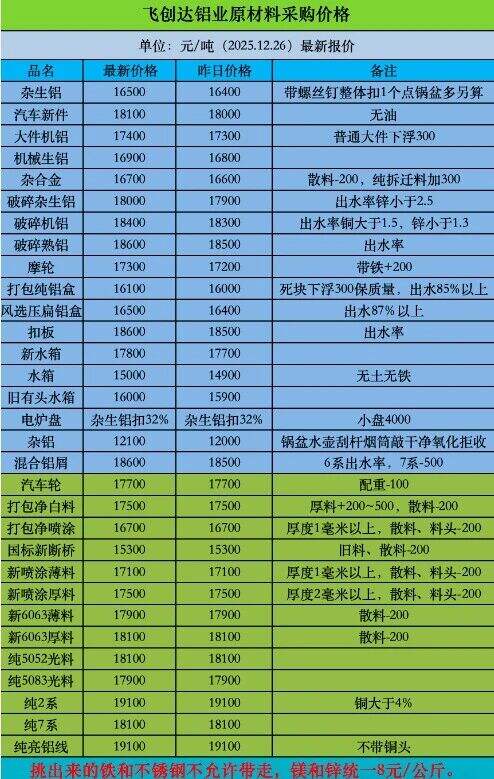 ****年**月**日飛創(chuàng)達鋁業(yè)最新報價